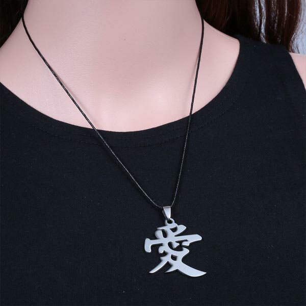 漢字の愛をデザインしたオリエンタルなステンレスペンダント。